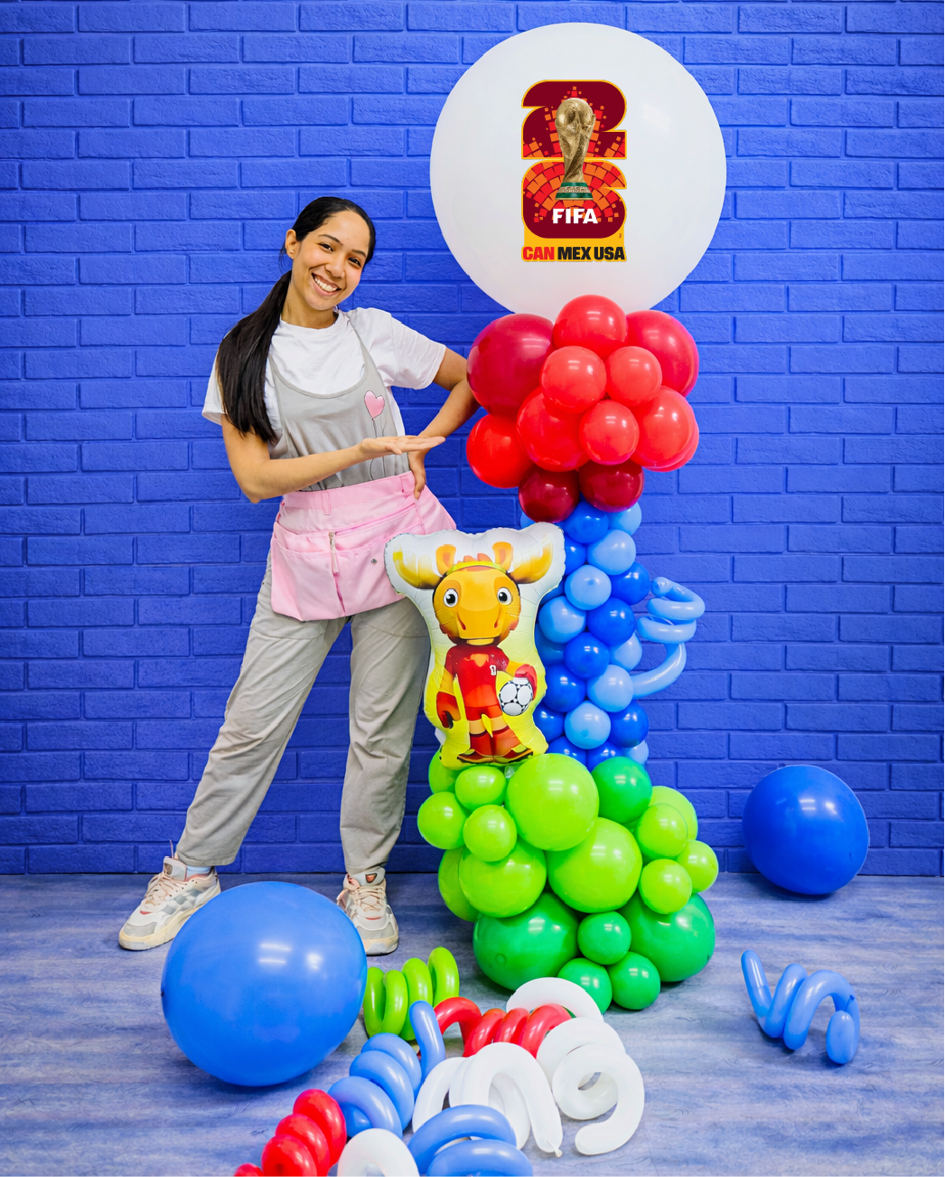 Bring the World Cup spirit to life with our FIFA World Cup Balloon Column, designed to make a statement in any space. Standing tall and eye-catching, this arrangement features a vibrant color palette and a jumbo top balloon printed with the FIFA 2026 logo, making it a standout piece for any soccer-themed event.