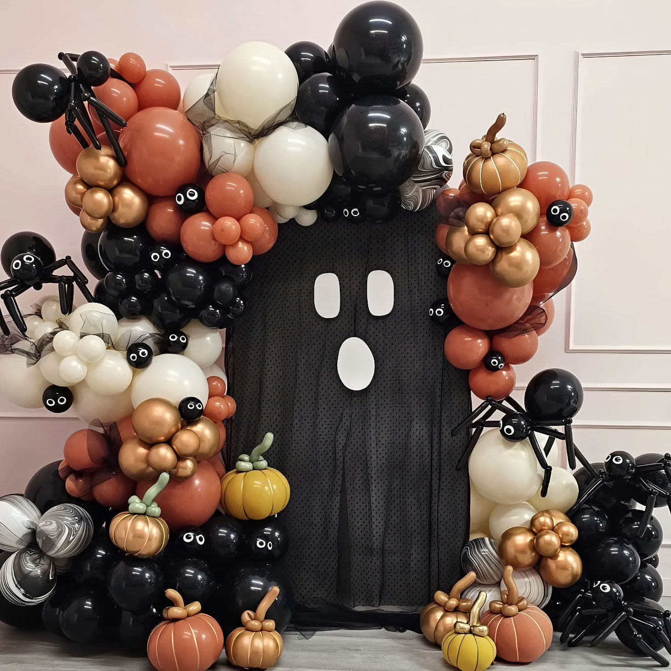 Elevate your Halloween party with "Ghostly Bash"! This set features a vibrant balloon garland in spooky colors and a charming ghost backdrop, perfect for fun photos and festive vibes. Ideal for any Halloween celebration!