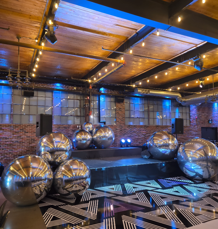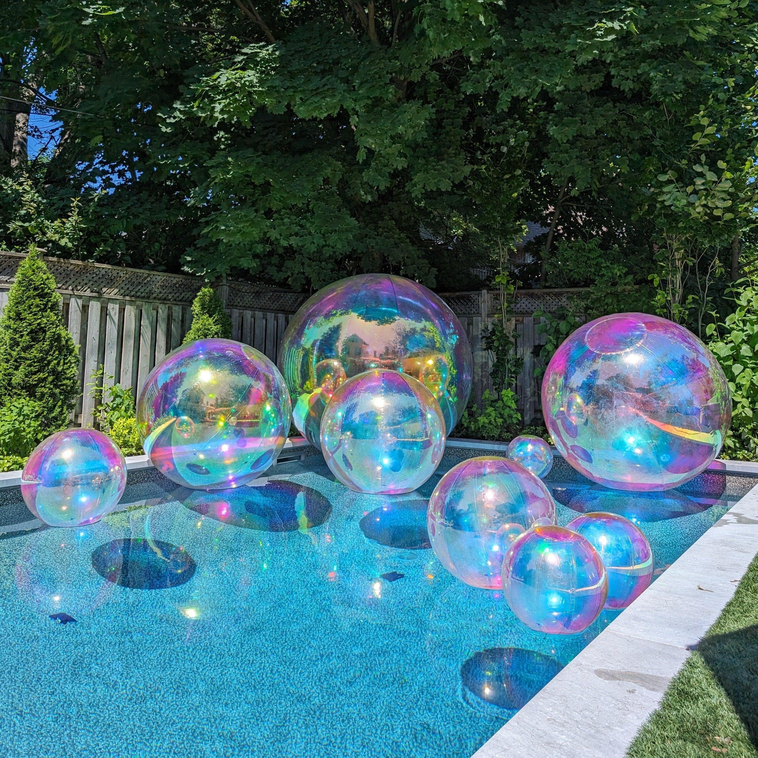 Inflatable spheres in various sizes, ranging from approximately 3.3 ft to 6.6 ft in diameter.
